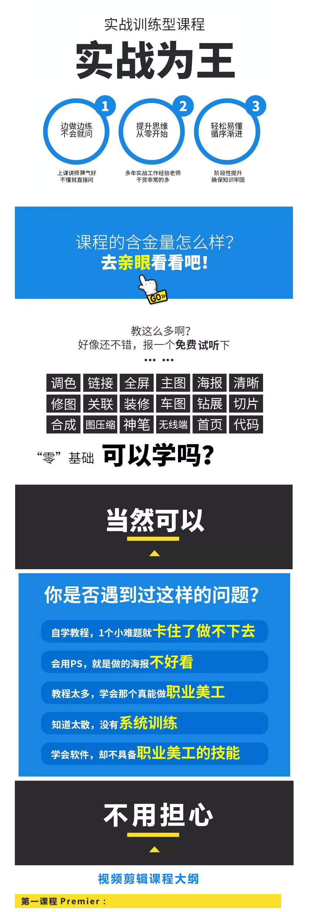 内容包括对于剪辑与视频格式的详解、各种基础操作、工具命令的使用方法,还会讲解到动画的制作以及如何调节视频与音频的特效,还包括剪辑工作中经常使用到的多机位剪辑、字幕创建和常熟手等。